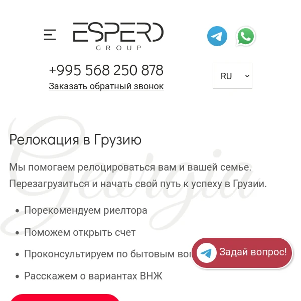 Хочу выразить огромную благодарность компании Эсперо за их профессионализм и помощь в регистрации индивидуального предпринимателя в Грузии. Весь процесс прошёл гладко и без каких-либо задержек благодаря их опыту и компетентности.